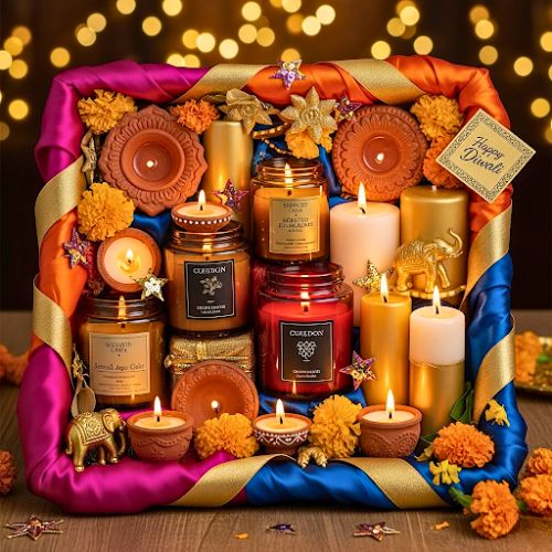 “Illuminate the season with this premium hamper featuring an exquisite collection of handcrafted candles β from traditional diya-style pieces to elegant scented jars and modern pillar candles. Perfect for Diwali pooja, festive dΓ©cor, or as a luxurious gift for loved ones and clients alike, this set blends timeless tradition with contemporary charm.